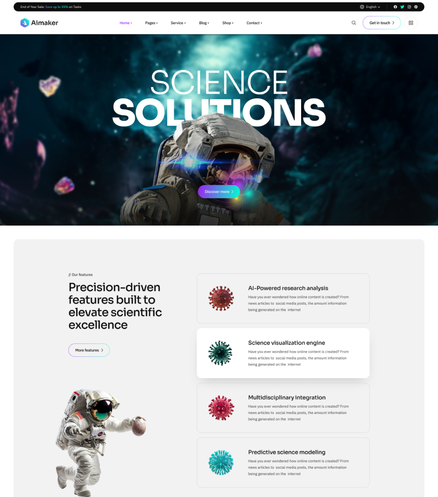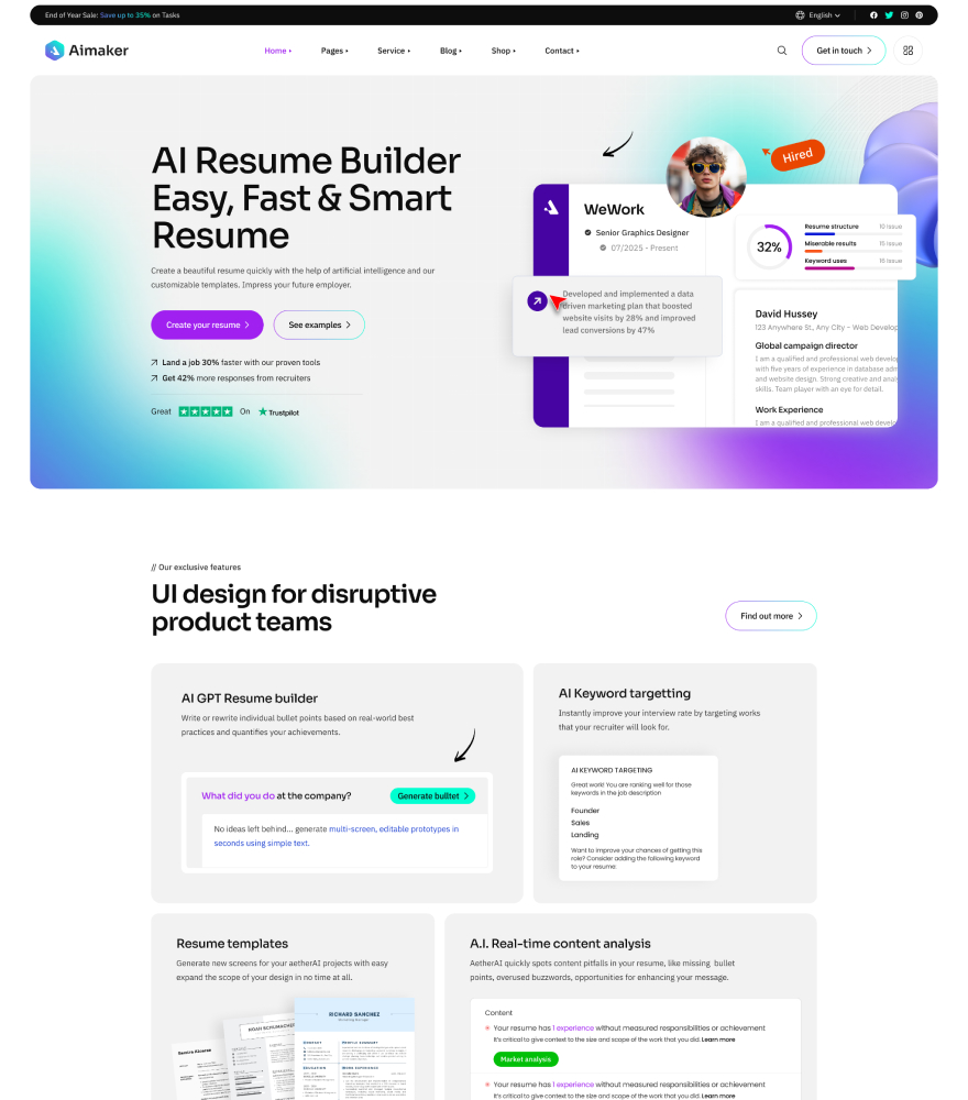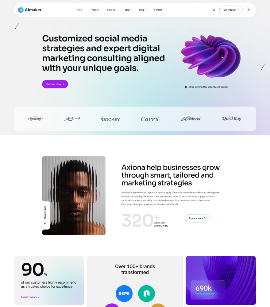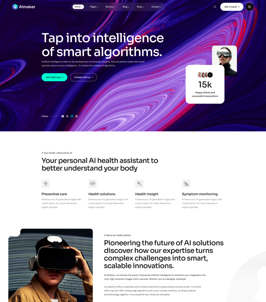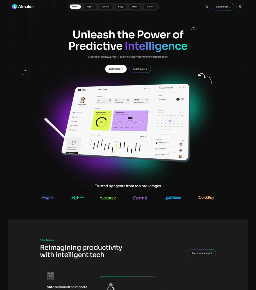 The Aimaker built with modern agency ike HTML5, Bootstrap, SASS, GSAP etc. You can use it to build your dream website. So, don't waste your valuable time. Just click here and buy the template.