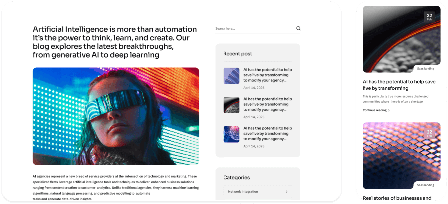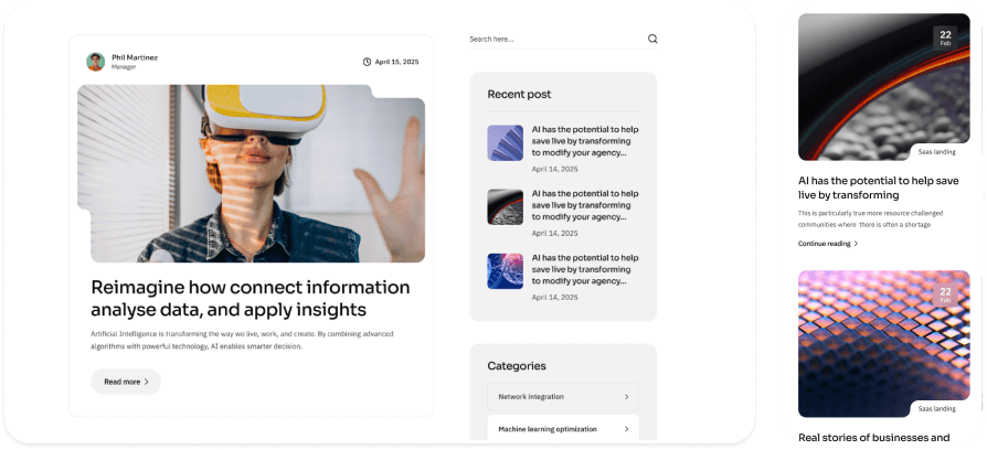 Section and blocksReady to use pages to launch your website fast.